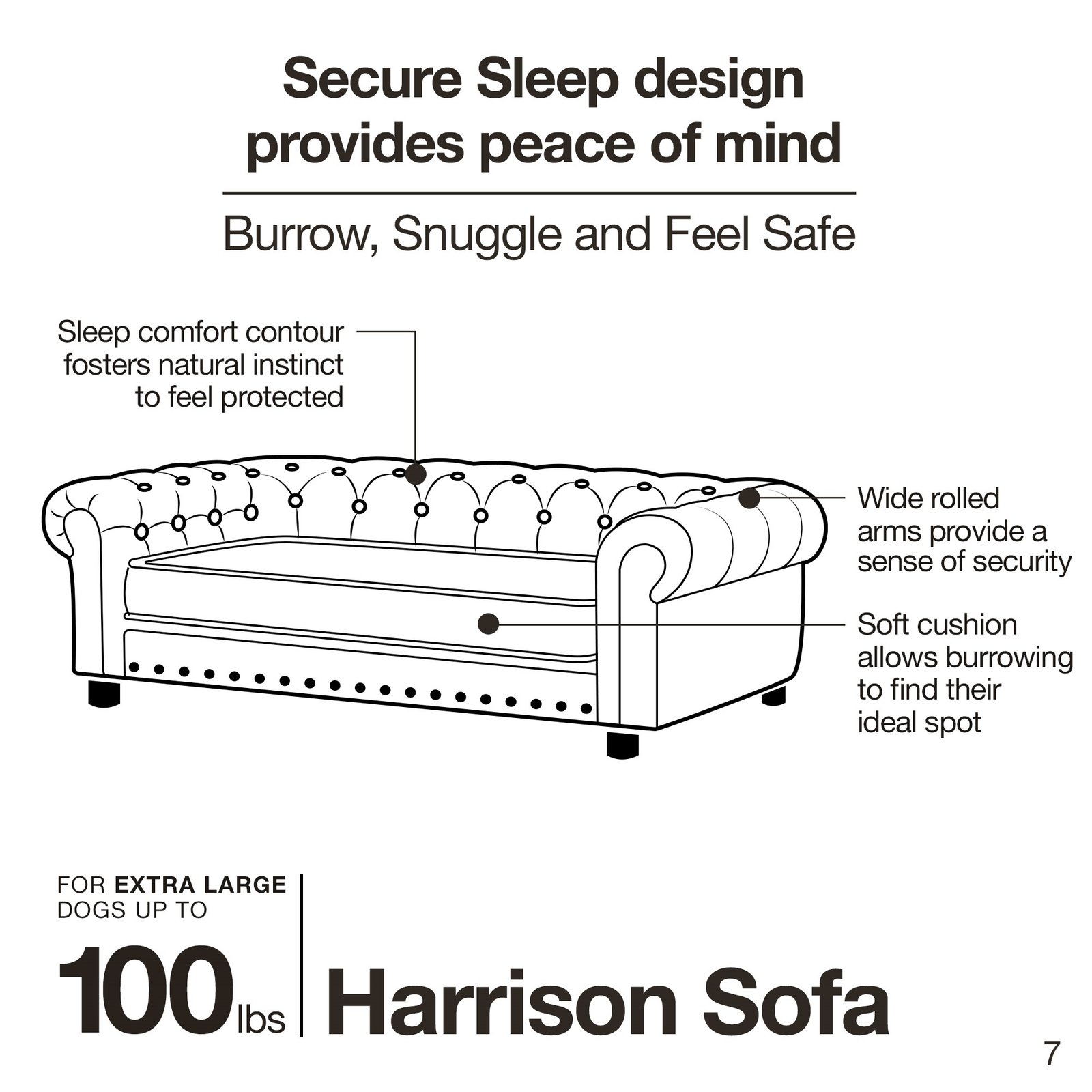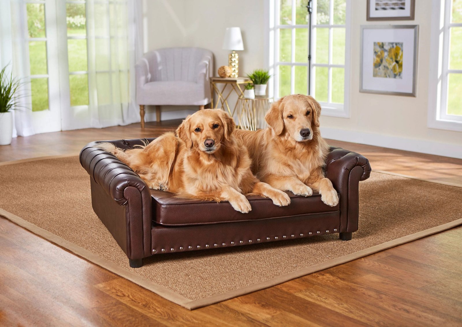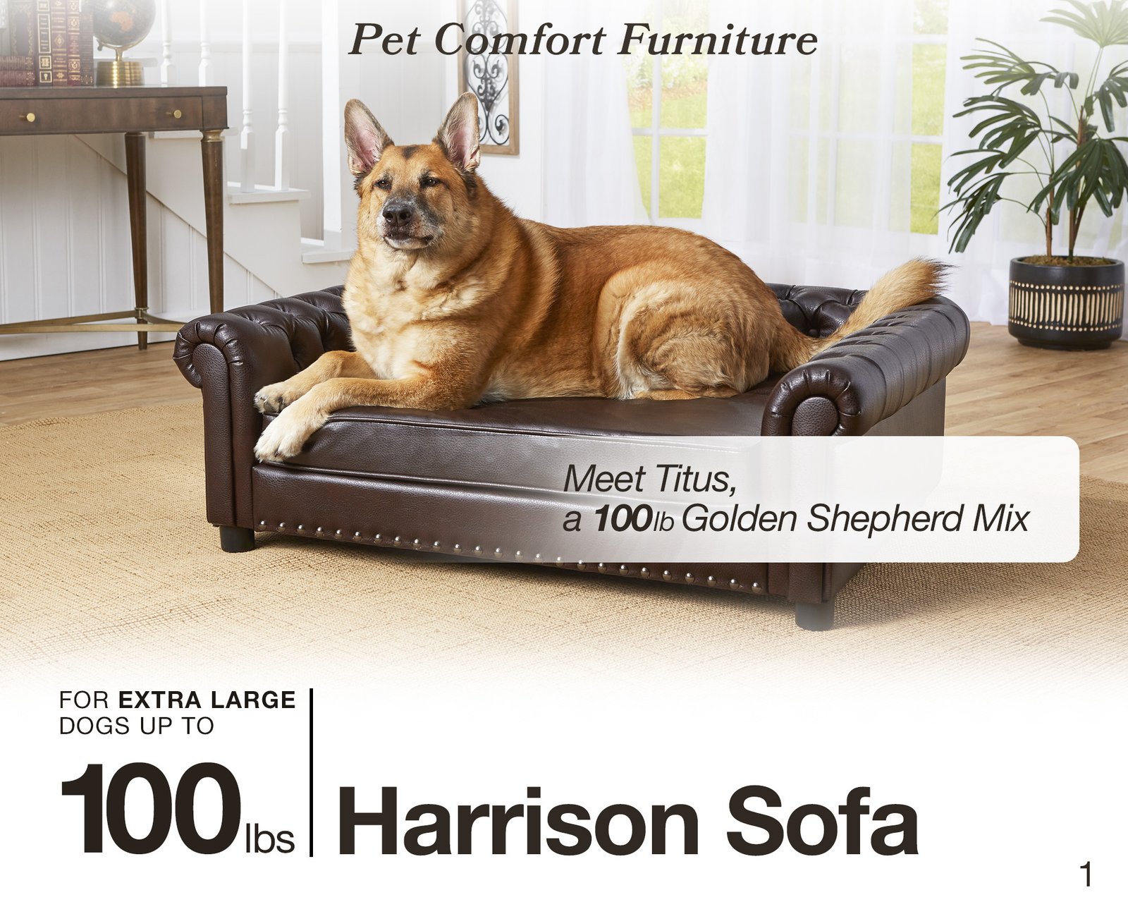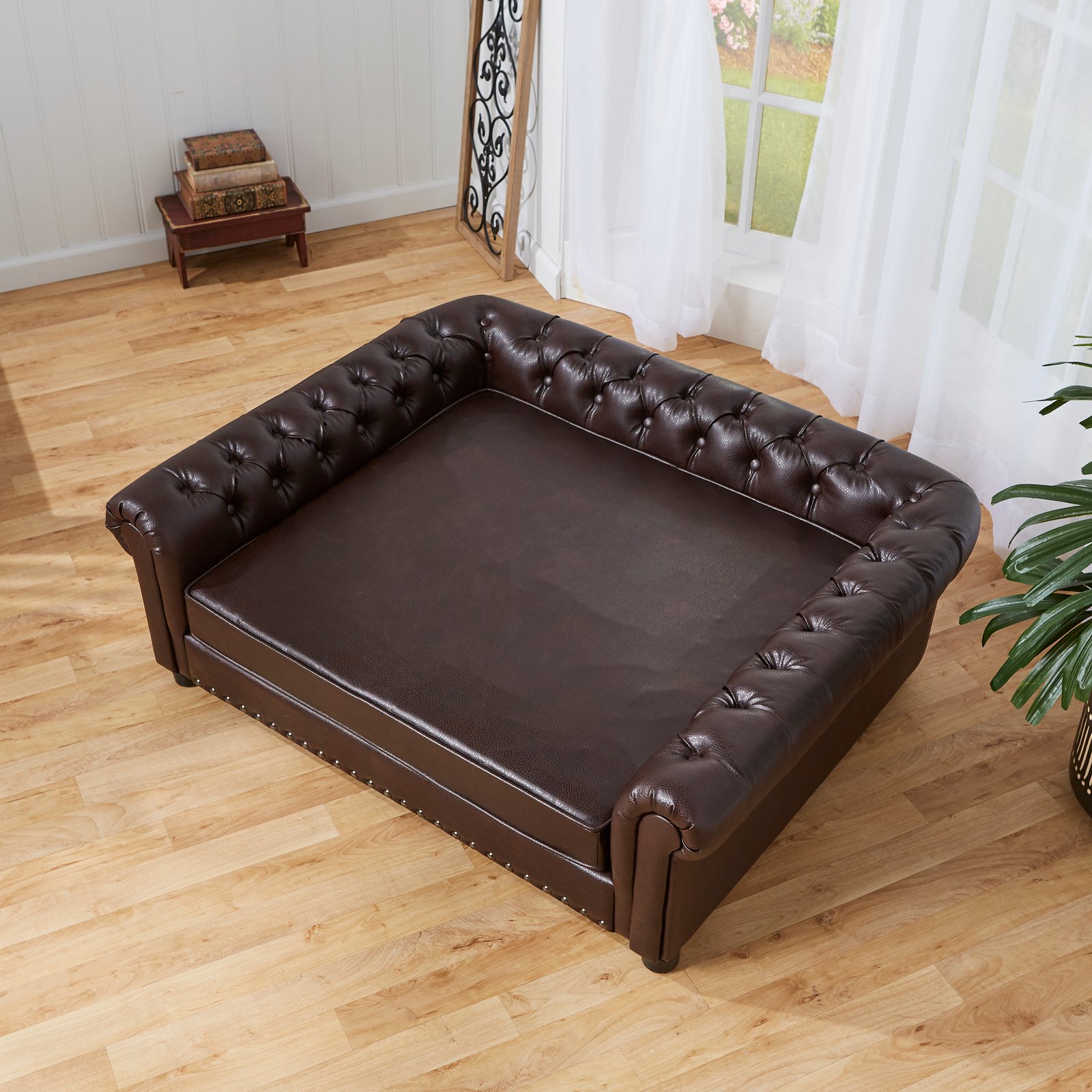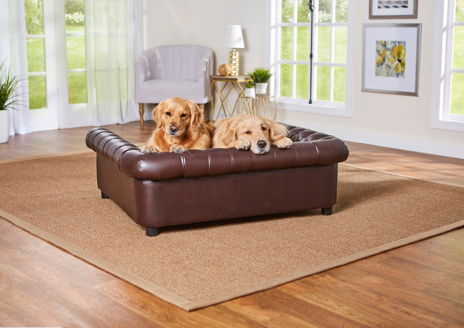 furniture grade construction. Its classic look with rolled arms and tufted back makes this a favorite with the grandest sized dogs.