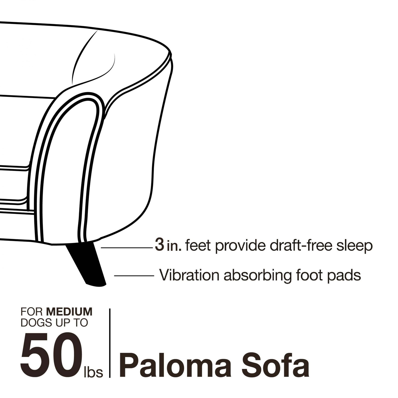 3” legs lift bed off floor, keeping your pet draft free