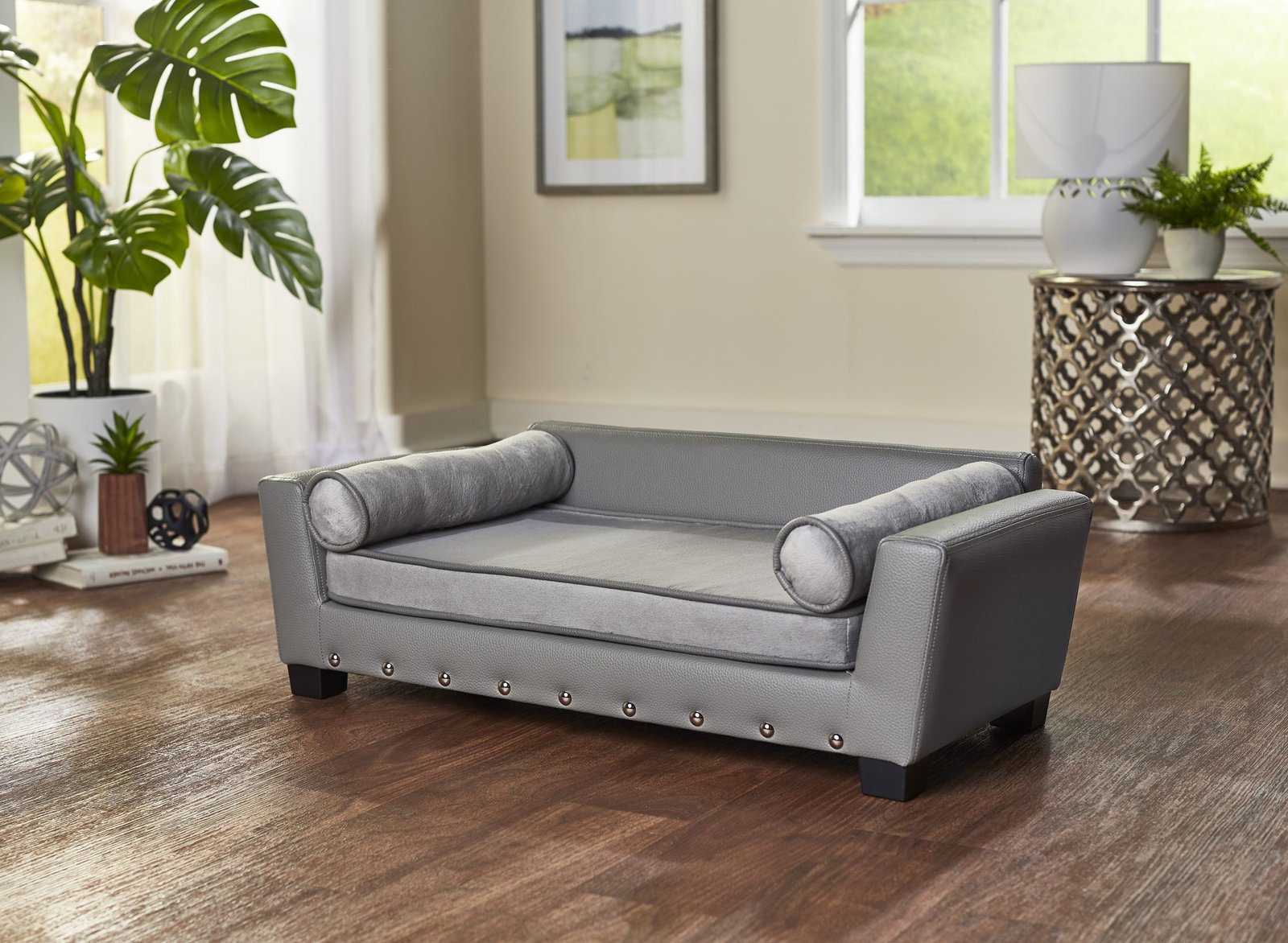 Two plush bolster cushions make a perfect lounging spot for pets who stretch out or lean while sleeping.