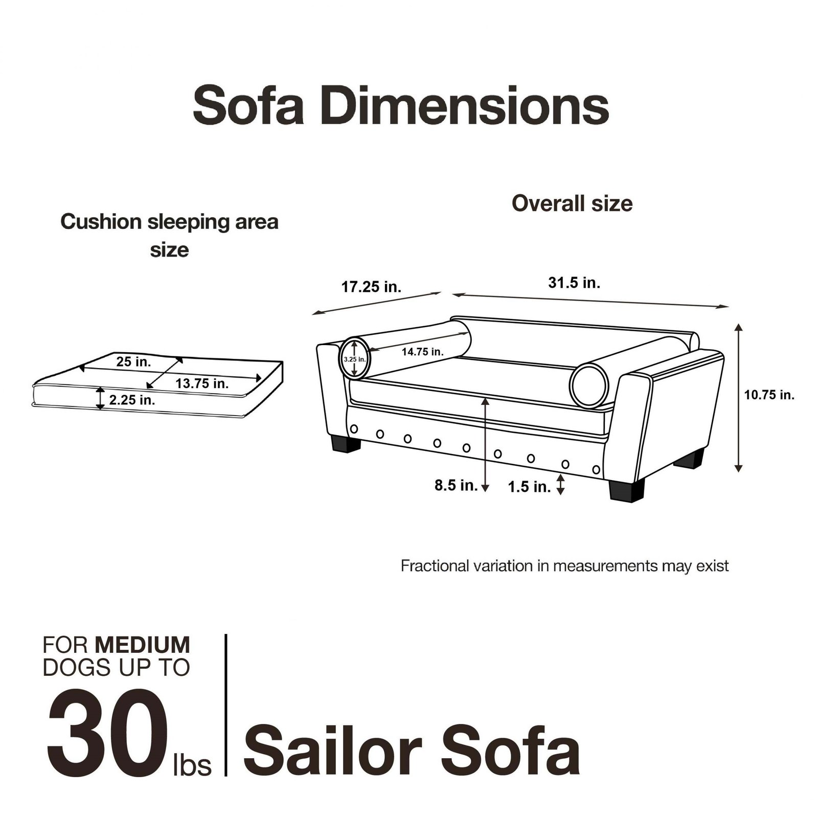 Pet sofa size is 31.5″ x 17.25″ x 10.75″