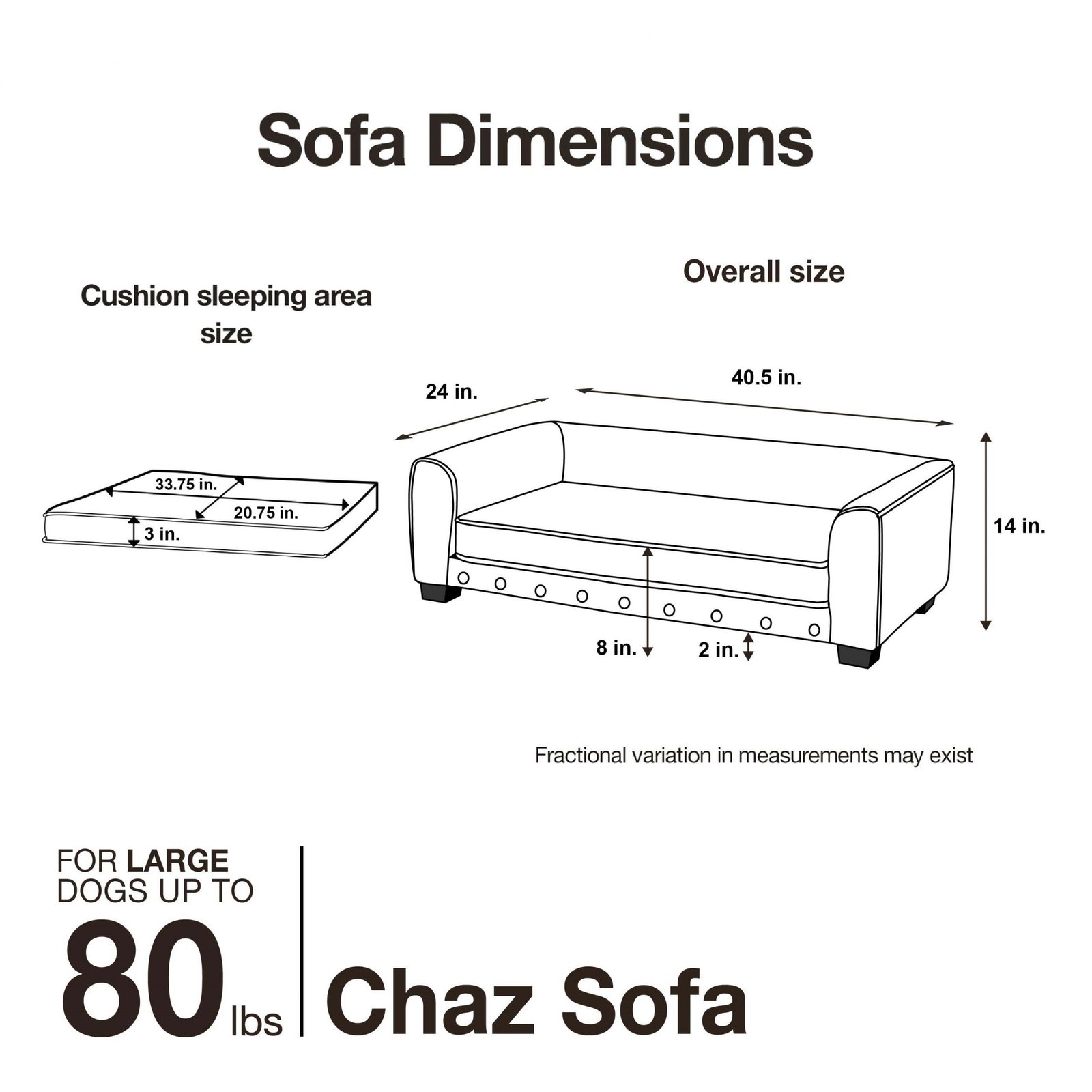 Pet sofa size is 40.5″ x 24″ x 14″