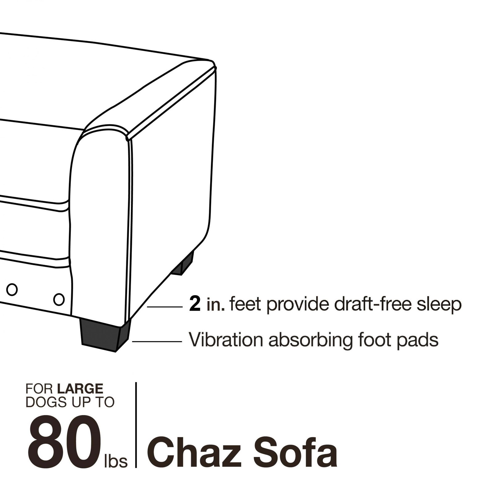 2” legs lift bed off floor, keeping your pet draft free