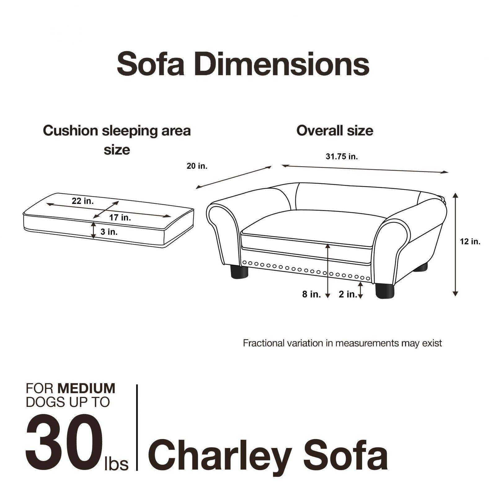 Pet sofa size is 31.75″ x 20″ x 12″