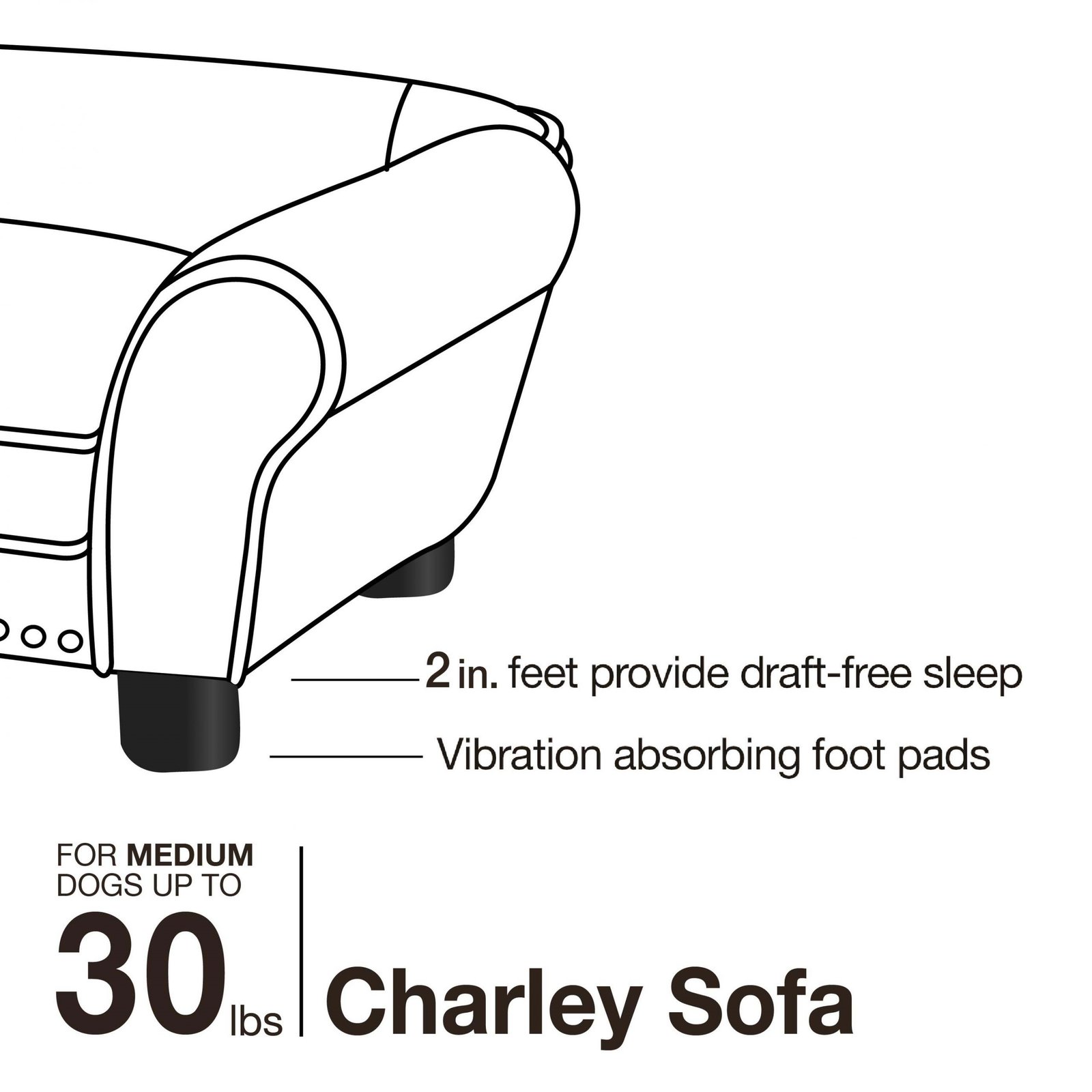 2” legs lift bed off floor, keeping your pet draft free