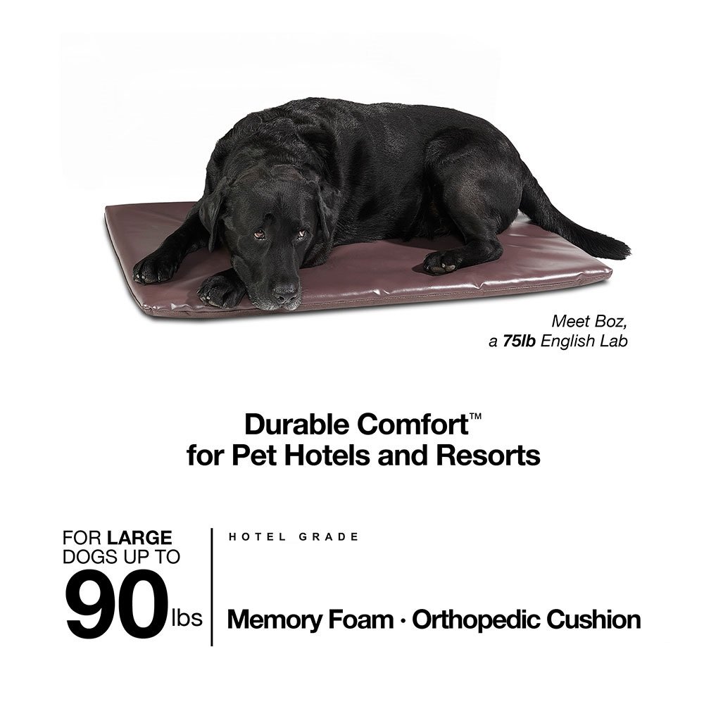 The ProEdge Orthopedic cushion is made of commercial class upholstery, providing durable comfort for pet resorts & hotels.