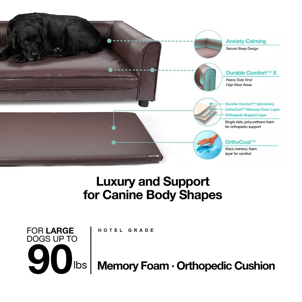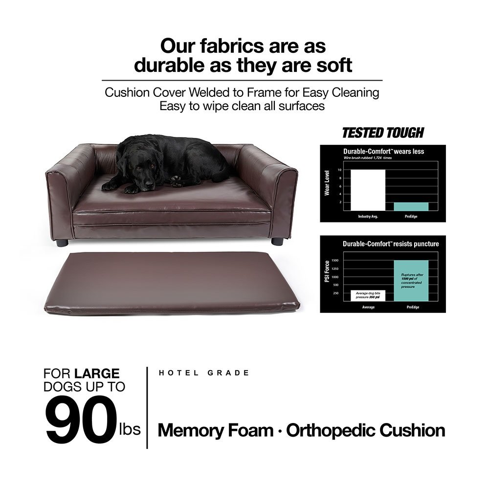 The faux leather is 50% thicker than standard pet sofa upholstery, resisting tearing, ripping, clawing and puncturing.