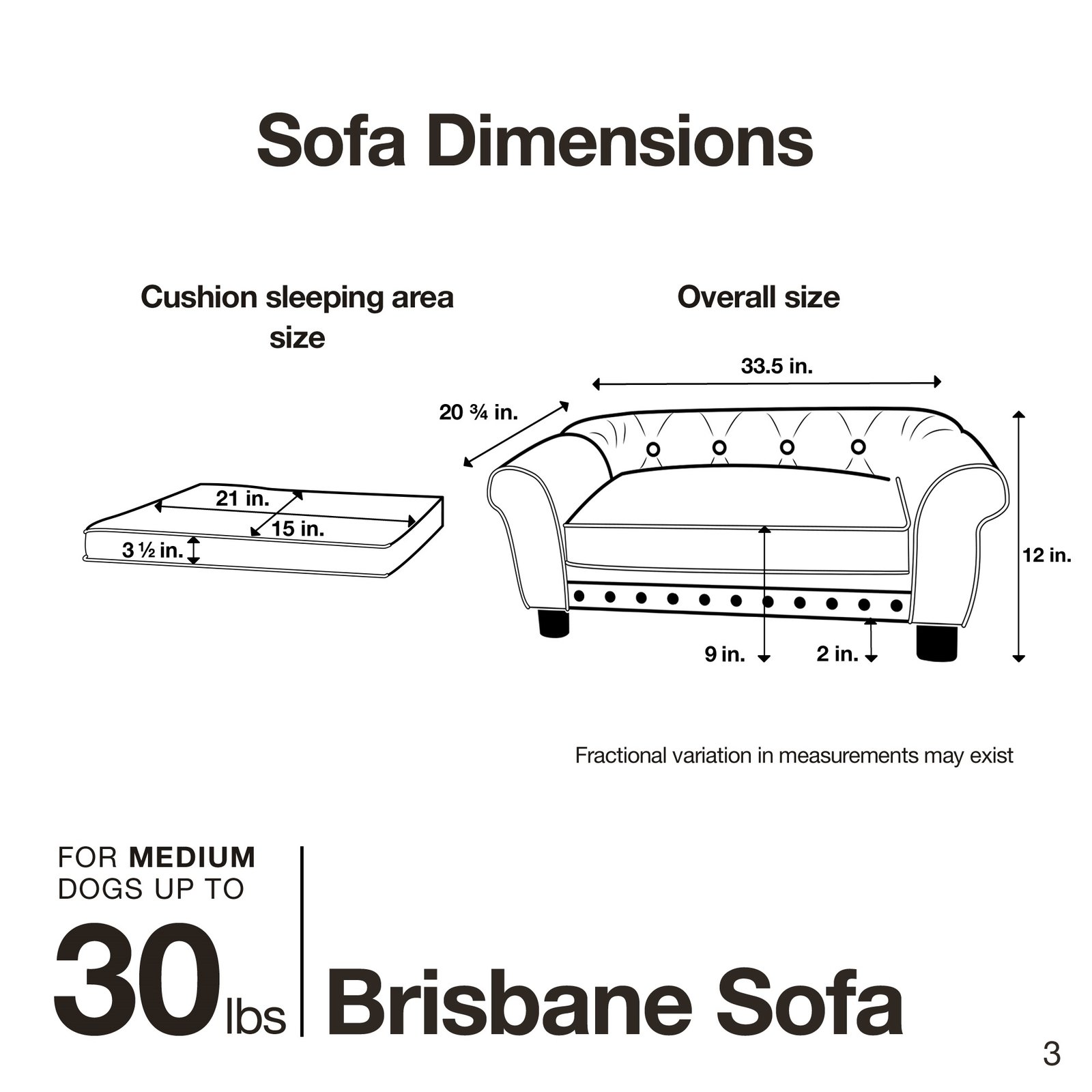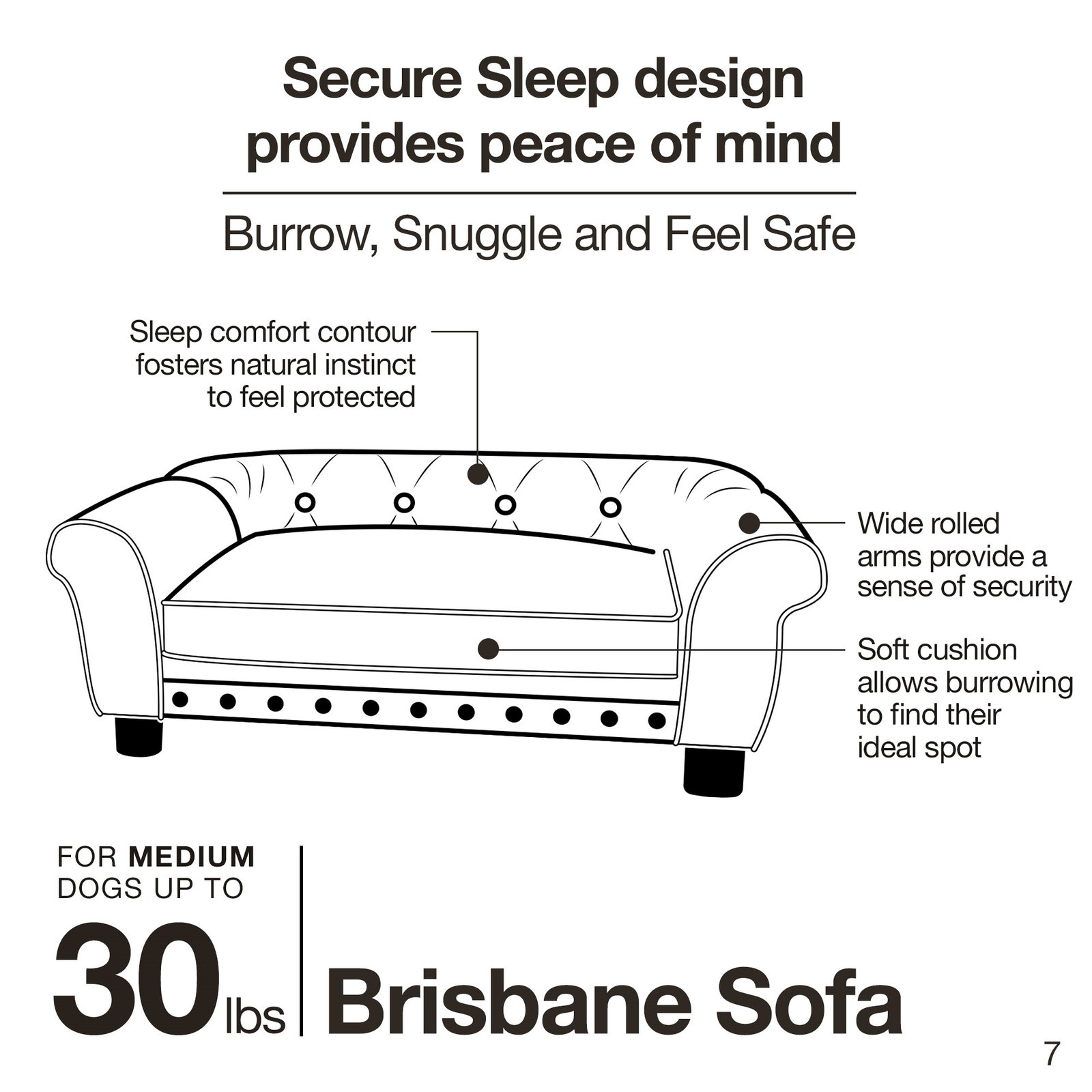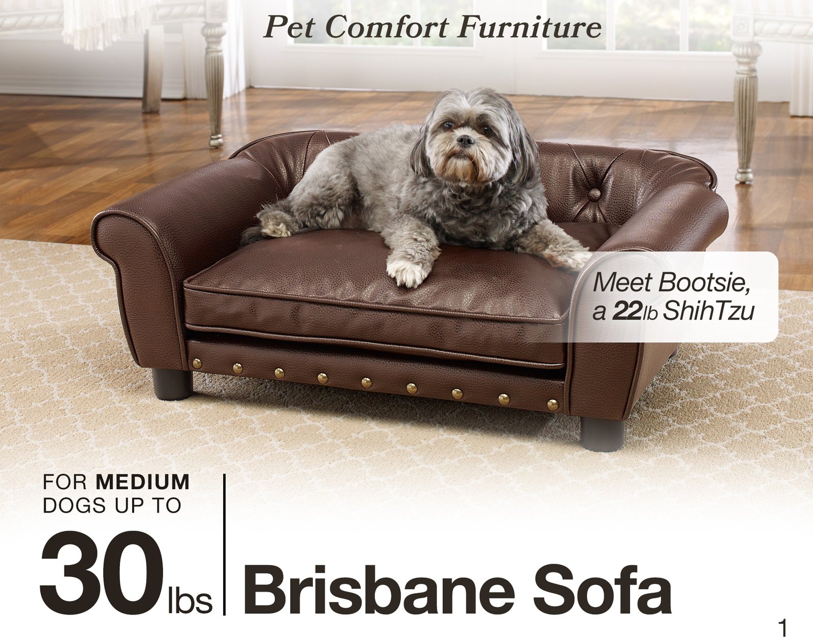 Bootsie, a 20 pound Shih Tzu, loves to lie on her Brisbane Sofa, a classically designed, tufted,