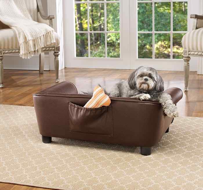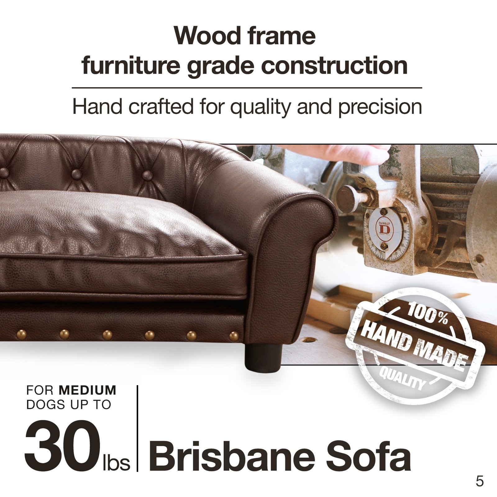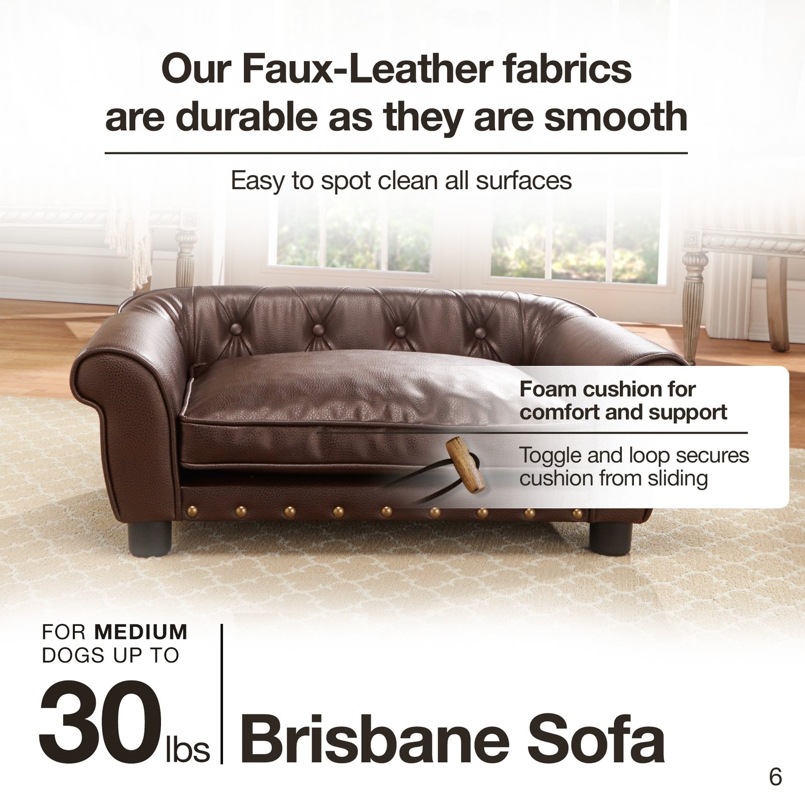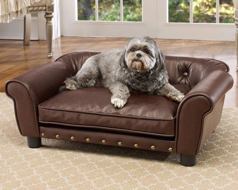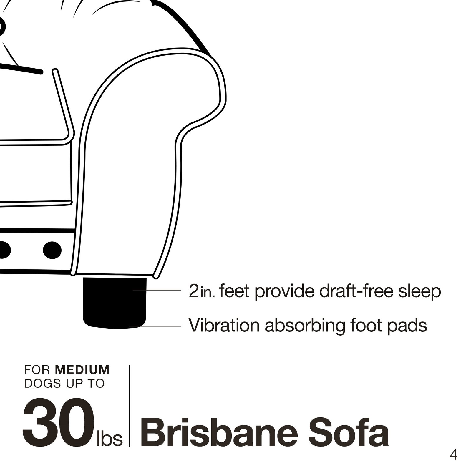 Bootsie, a 20 pound Shih Tzu, loves to lie on her Brisbane Sofa, a classically designed, tufted,