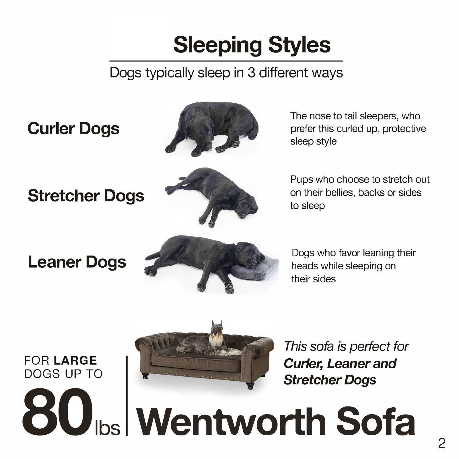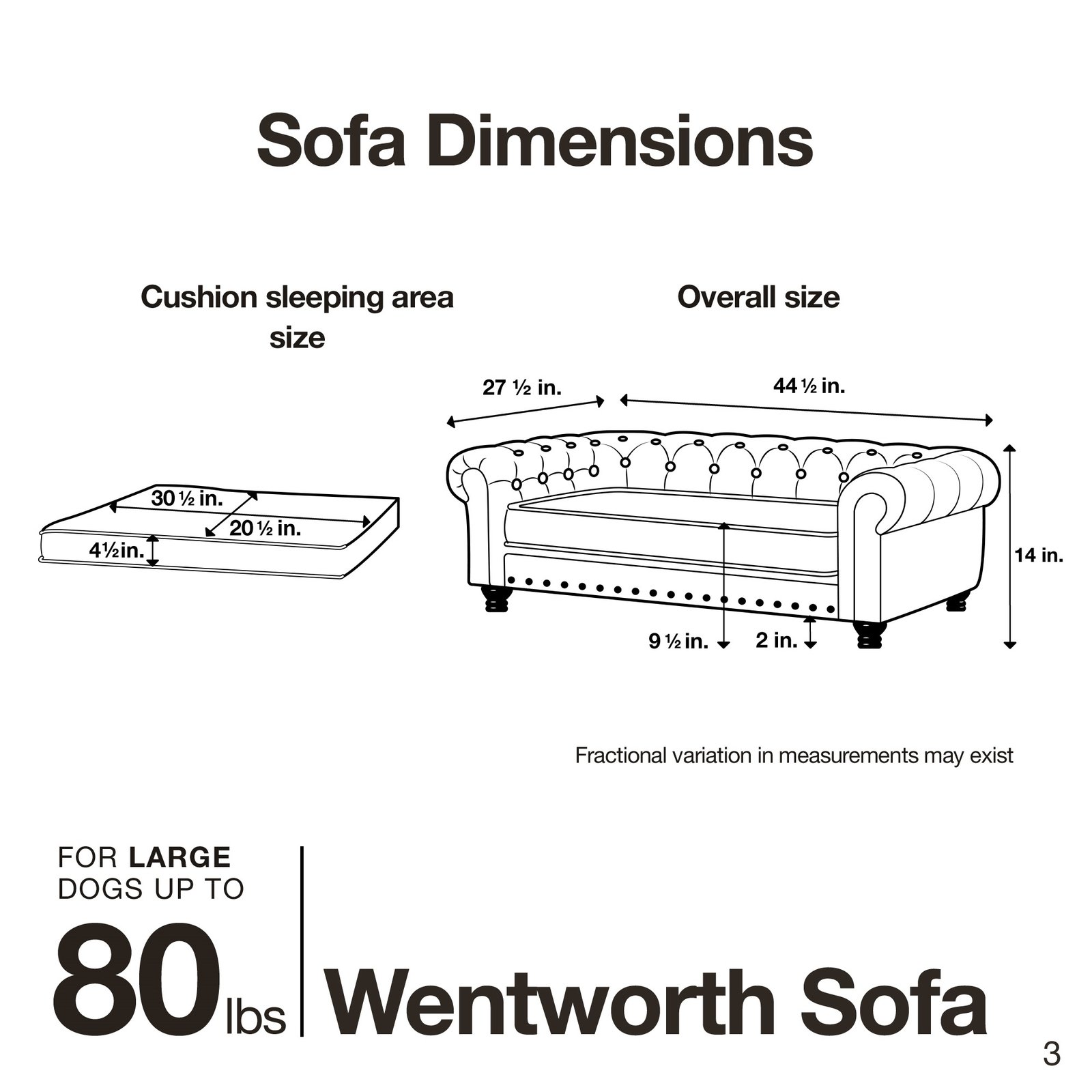 Durable furniture grade construction with a solid foam cushion, it suits a medium dog who likes to lean while resting.