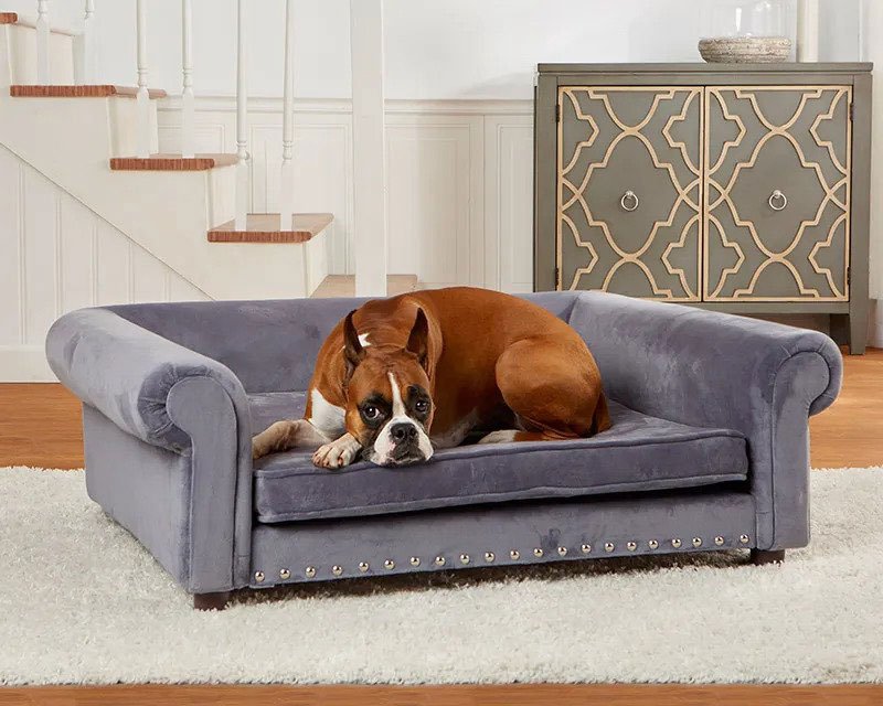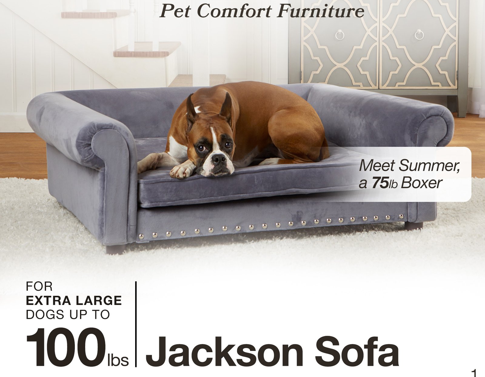 This is Summer, a 75 pound Boxer, comfortably lounging on one of our largest style sofas, the Jackson.